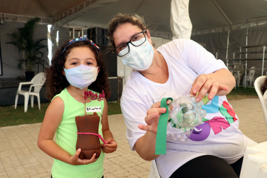 Tio Sam e Tia Lelê realizam oficina de recicláveis na Tenda Cultural