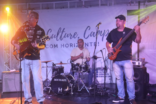 Cantor dividiu o palco com os músicos Marcelo Simpson (contrabaixo e vocal) e Gilberto (bateria)