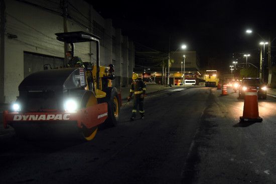 Prefeitura aplica revestimento asfáltico durante a madrugada deste sábado no Centro
