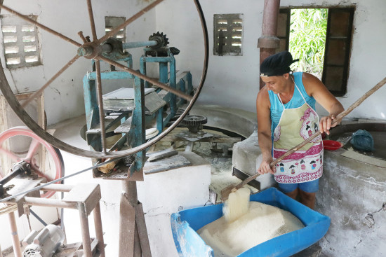 “A gente vai aprendendo com a experiência. O campista não gosta muito de farinha fina. Então tenho de ficar atenta à temperatura, ao tempo que vou misturar a farinha e isso vai do estilo de cada um. Eu fui aprimorando minha técnica para conseguir que a Farinha da Bahiana ficasse torradinha e com a textura que os campistas e as pessoas da região gostam”, contou a assentada que já conseguiu trocar a bulandeira manual por uma mecanizada e, agora, para aumentar a produção, quer investir em um lavador, que ainda não tem, e em uma prensa melhor, tudo isso enquanto aguarda a titularidade de sua unidade familiar em Zumbi dos Palmares.
