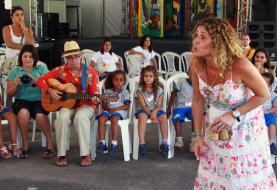 Uma grande brincadeira de roda divertiu a criançada, na manhã desta quinta-feira (14), no estacionamento do Teatro Trianon, dentro do Consciência Ampla Cultural. Um grupo de 80 alunos da Escola municipal Castelo Branco cantou e brincou com os atores Silvia Ferraz e Marcelo Peregrino, do grupo Baú que Conta e Canta. Festejando 14 anos de sucesso, o grupo trouxe brincadeiras que estão perdendo espaço para a tecnologia.
