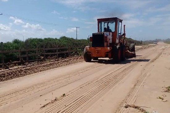Defesa Civil e Obras retiram excesso de areia na pista e liberam estrada no Farol