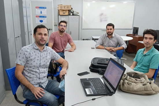 Presentes o secretário de Desenvolvimento Econômico e Turismo, Felipe Knust, e o diretor do Programa Economia Solidária, Sandro Figueredo; os professores do curso de Ciências Econômicas, Vladimir Faria dos Santos e Samuel