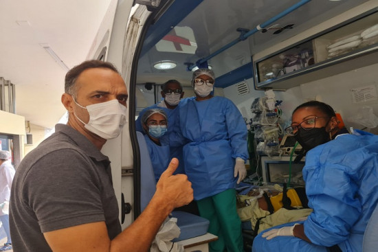 Uma ambulância com equipamentos de uma Unidade de Tratamento Intensivo (UTI) sai no final da manhã deste sábado (04) com destino ao Hospital da Criança, no Rio de Janeiro