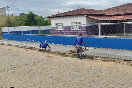 Estão sendo realizados na escola serviços de pintura, troca das grades que protegem a escola, reforma da cisterna, entre outros