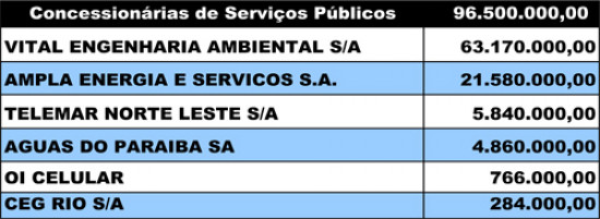 A prefeitura efetuou, em 2010, o pagamento total no valor de R$ 96,5 milhões a seis concessionárias que prestam serviços à municipalidade, garantindo a funcionalidade plena da máquina pública e o atendimento adequado à população a partir de serviços essenciais como limpeza pública, fornecimento de gás à rede hospitalar, iluminação de prédios municipais e vias públicas e abastecimento de água a unidades pertencentes ao governo municipal.