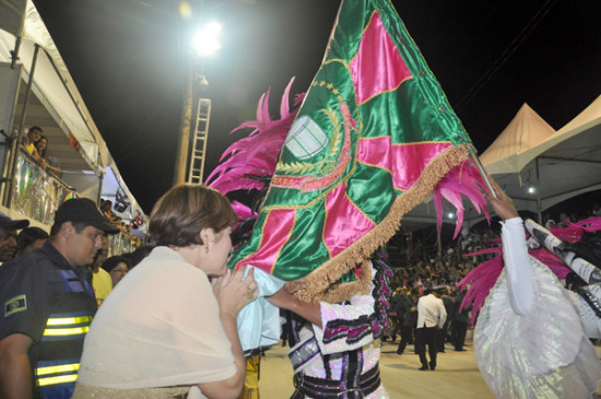 Antes de começar a apresentação, os integrantes da Mangueira foram cumprimentados pela prefeita Rosinha Garotinho, que em seguida atravessou a avenida distribuindo camisas do carnaval para as pessoas nas arquibancadas, que estavam superlotadas. A prefeita foi muito aplaudida pelo público, que gritou o nome de Rosinha Garotinho.