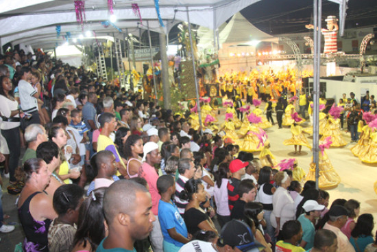 O desfile deste ano está sendo transmitido ao vivo pela Uni TV, canal 15 da Via Cabo e pelo portal redenoticias.net.br. a próxima escola de samba a entrar na avenida é a Madureira do Turfe.