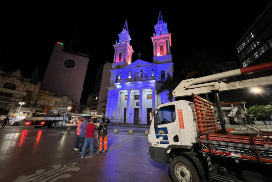 Trabalhos foram realizados pela Subsecretaria de Iluminação Pública, na noite desta segunda-feira (25). Festejos do padroeiro chegam à 370ª edição, no dia 6 de agosto