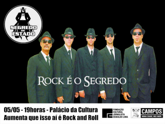 O show da Banda Segredo de Estado, que estava marcado para quinta-feira passada (28) e foi adiado devido ao mau tempo, foi confirmado para esta quinta-feira (05), a partir das 19h, na semi-arena do Palácio da Cultura. O show faz parte do Projeto “Aumenta que isso aí é Rock and Roll”, da Fundação Cultural Jornalista Oswaldo Lima, com entrada gratuita.