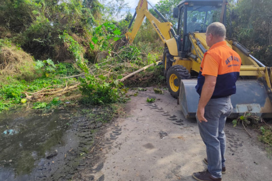 Defesa Civil atua na retirada de vegetação para desobstrução da rede de esgoto