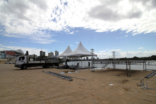 Foliões no Cais da Lapa: Estrutura começa a ganhar forma