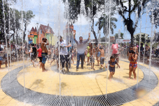No clima de Dia das Crianças, depois de percorrer todo o parque e cumprimentar pessoas de todas as idades, o prefeito Wladimir se juntou à meninada na fonte interativa.