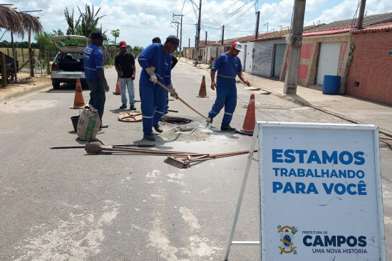 Além dos reparos com obras de alvenaria para recuperar as caixas dos ralos de drenagem, também estão sendo trocados os tampões dos poços de visita das redes de drenagens