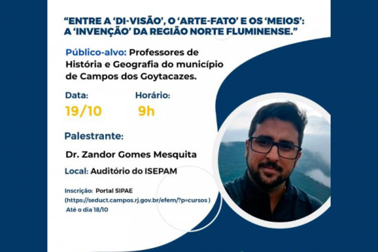 Palestra sobre invenção do Norte Fluminense para professores de História e Geografia