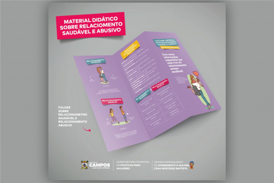 Com linguagem simples, leve e bem ilustrativa, o folder diferencia os aspectos principais de um relacionamento saudável