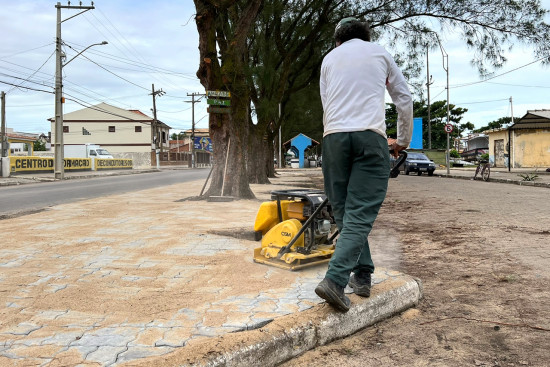 Equipes de calceteiros realiza reparos com uso de bloquetes intertratavados no Calçadão da Orla.