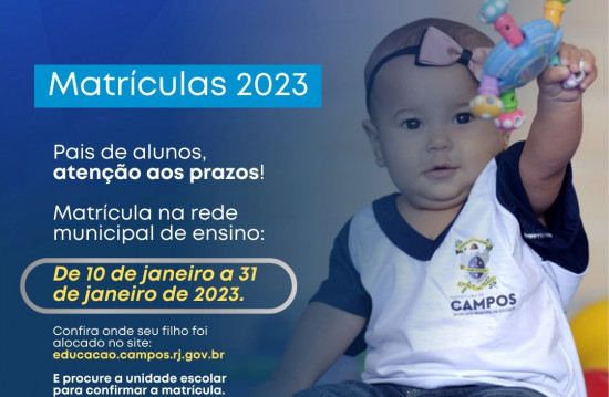Matrícula 2023 nas unidades escolares municipais até terça