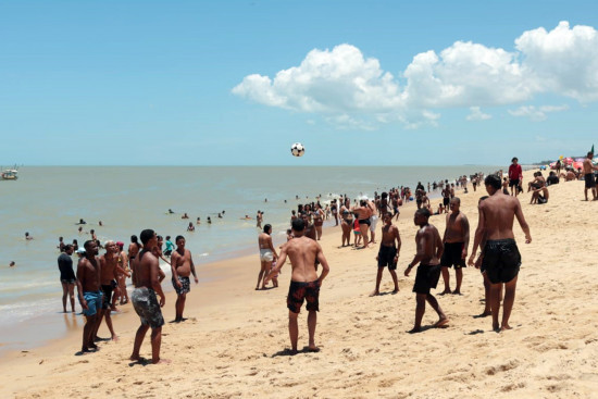 Com temperaturas elevadas, os veranistas estenderam as cangas, posicionaram as cadeiras e armaram os guarda-sóis, que ajudaram a colorir a paisagem da beira mar