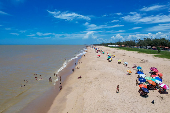 Céu limpo e muito calor na Praia do Farol de São Tomé, neste domingo (29). A beira da praia recebia bom público às 14h30min, mas ainda havia espaço na faixa de areia para quem buscava um lugar mais reservado.