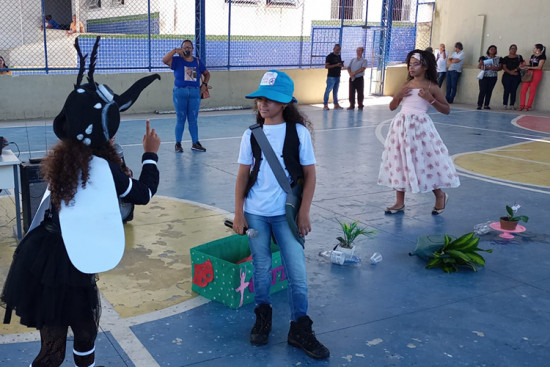 A campanha "Dengue Aqui Não" também foi realizada na Escola Municipal Albertina Venâncio, que contou com a participação do Grupo Gotta