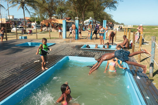 Para alegria dos pais, crianças preferem tomar banho nas piscininhas