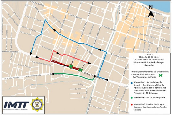 De acordo com o Instituto Municipal de Trânsito e Transporte (IMTT), os dois trechos ficarão interditados no mesmo horário, das 9h às 16h