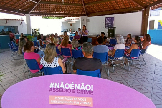 A palestra foi ministrada pela coordenadora do CEAM, Érika Nogueira, que tem conscientizado mulheres sobre os tipos de violência e os equipamentos que as vítimas podem procurar para sair do ciclo