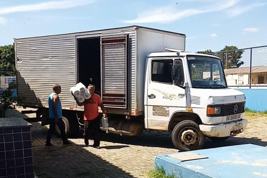 Unidades escolares estão recebendo material de limpeza e higiene, como papel higiênico, sabonete líquido, sabão em pó, detergente, desinfetante e cloro, além de outros itens como papel A4