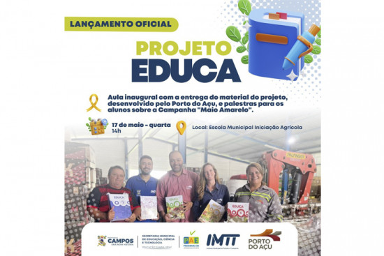 Aula inaugural do Projeto Educa com Porto do Açu nesta quarta-feira