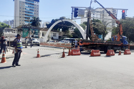A interdição tem por finalidade a substituição da coluna semafórica após colisão de um veículo no local