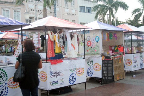 - As novas barracas da Feira Mãos de Campos estão muito bonitas. A Praça São Salvador é o melhor lugar para divulgar o artesanato do município. Vários municípios realizam feira de artesanato na praça principal da cidade. Além valorizar o trabalho dos artesãos, a feira atrai truistas e divulga a cultura do município – ressalta a comerciária Ana Paula Arêas.