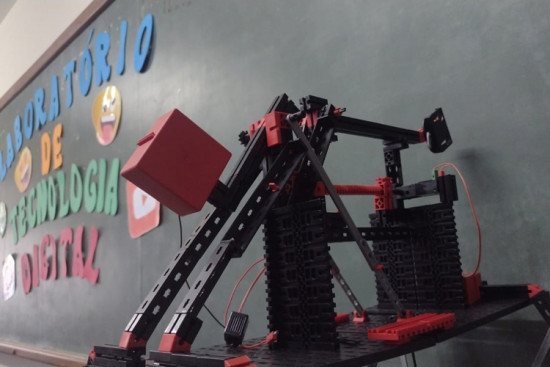 Montado com kits de robótica e com cerca de 1 metro de altura, o robô construído no Laboratório de Tecnologias Digitais da Escola Municipal Amaro Prata Tavares, no Centro, está fazendo sucesso. Desenvolvido por alunos do 9º ano do Ensino Fundamental Anos Finais, ele se locomove através de controle em um aplicativo no celular. Ele ainda está em fase de desenvolvimento e terá partes móveis e luzes de led.