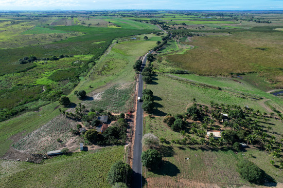 Estrada CA-20 com asfalto novo entre Usina São João e Campelo recebe sinalização