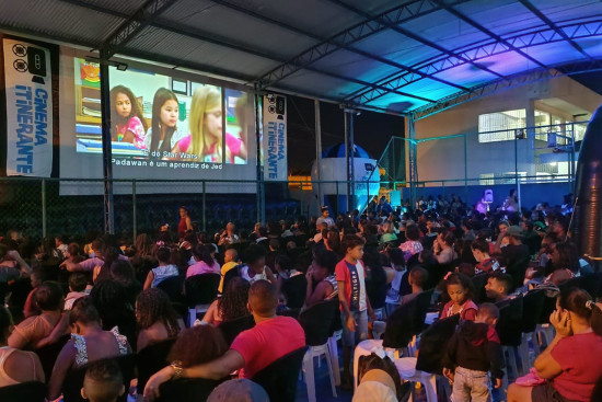 Na noite desta quarta-feira (23), moradores do Parque Santa Rosa viveram uma experiência diferente e incrível. Eles participaram de sessão cinematográfica do Projeto Cinema Itinerante da Secretaria Municipal de Educação, Ciência e Tecnologia (Seduct). A entrada foi gratuita e para todos os públicos, com direito a pipoca e bebida. Uma grande estrutura foi montada no pátio da Escola Municipal Professora Eunícia Ferreira da Silva e centenas de pessoas prestigiaram o evento, que promoveu a integração entre as famílias.