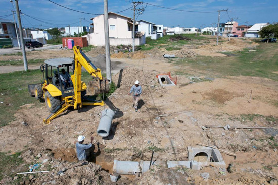 A Secretaria de Obras e Infraestrutura desenvolve os trabalhos em 37 ruas que somam mais de nove quilômetros em extensão e, atualmente, máquinas e homens atuam na escavação para a construção de galerias de águas pluviais