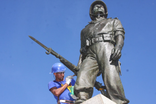 - Estamos fazendo a limpeza do soldado, utilizando um produto próprio para a remoção do verniz, que tinha sido aplicado em outros anos. Uma mureta de proteção para um pequeno jardim, que será colocada no entorno, já está pronta. Outras duas peças foram construídas para que as letras do monumento sejam afixadas. Na próxima sexta-feira (22) vamos finalizar a reforma - ressaltou o mestre de Obras, Erenildo Carvalho.