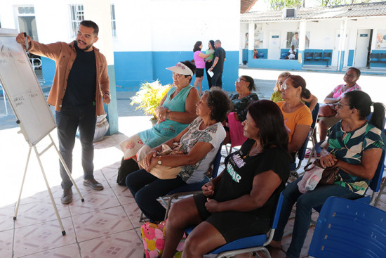 Idosos participam de terapia em grupo no Clube da Terceira Idade
