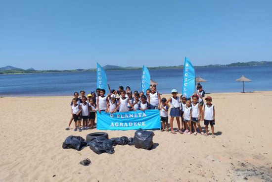 Foram recolhidos cerca de cinco sacos de lixo com materiais como pneus, garrafas pets, garrafas descartáveis e latinhas de bebidas