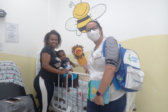 Ação entre o Programa e o Serviço Social do hospital foi realizada para divulgar as informações do Criança Feliz, além de promover a interação com as crianças internadas