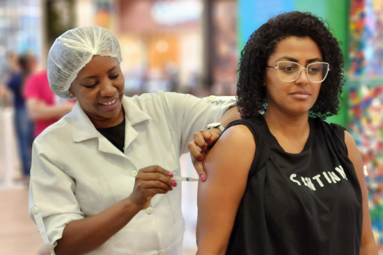 “Quando fiquei sabendo que teria evento de vacinação aqui eu adorei, primeiro por ser no fim de semana e segundo pela praticidade, porque aproveito para fazer tudo de uma vez só”, disse a professora Elaina Crespo Viana, 45, que aproveitou o passeio no shopping para colocar a caderneta de imunização do filho Gabriel, de 12 anos, em dia.