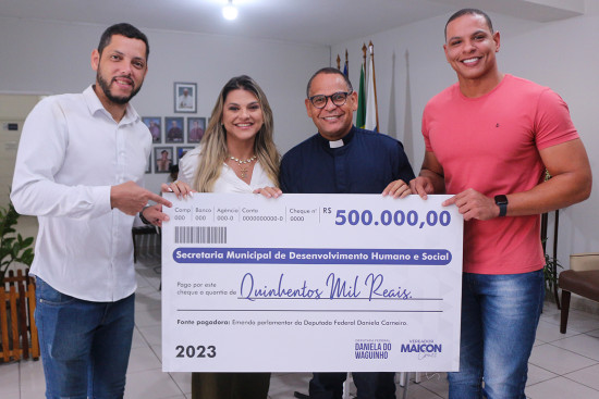 A instituição foi beneficiada por emenda parlamentar de R$ 500 mil, destinada pela deputada federal Daniele do Waguinho, cuja entregue do cheque simbólico foi acompanhado pela primeira-dama Tassiana Oliveira