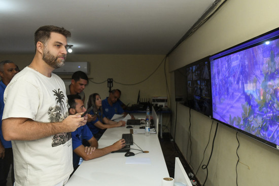 O prefeito acompanhou os trabalhos na central de monitoramento ao lado do secretário municipal de Ordem Pública, Jackson Sousa.