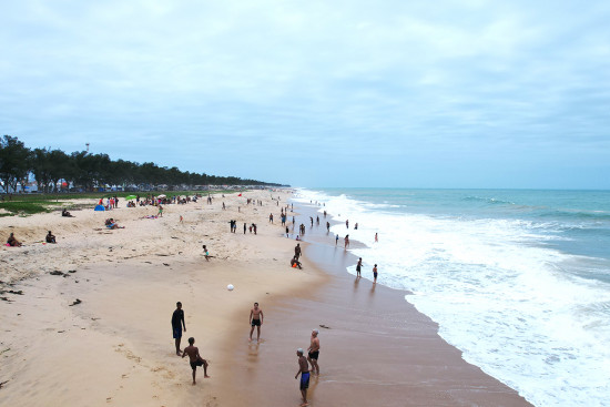 veranistas da praia do Farol de São Tomé. O dia começou com muita gente