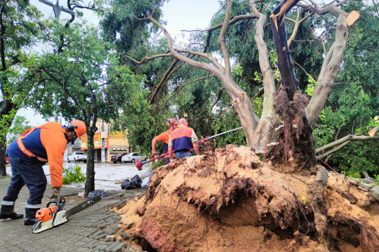 Foram 25 ocorrências relacionadas a quedas de árvores e o órgão atua em parceria com a Secretaria de Serviços Públicos na remoção
