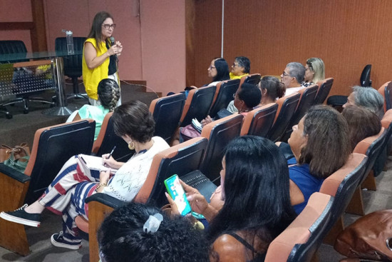 “O que é uma vida de valor? O que é uma vida plena? O que é uma vida feliz?” Essas foram algumas das reflexões propostas pela psicóloga cognitivo-comportamental e neuropsicopedagoga clínica, Pâmella Nogueira, aos profissionais da Educação que participaram do curso “Saúde Mental e Comunicação Eficaz - Comportamento Alimentar e Saúde Mental”, realizado nesta terça-feira (12), no auditório da Prefeitura. A capacitação foi uma promoção da Escola de Formação de Educadores Municipais (Efem), Gestão de Pessoas e Programa Saúde na Escola (PSE) da Secretaria Municipal de Educação, Ciência e Tecnologia (Seduct).