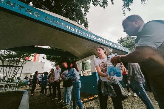Nesta segunda-feira (25), funcionários e amigos da Fundação doaram 1.200 garrafas de água potável de 1,5 litro e 1.200 de 500 ml para as famílias atingidas pelas chuvas