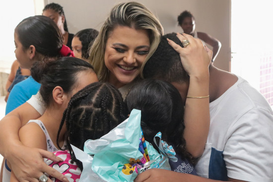 A primeira-dama Tassiana Oliveira percorreu 10 acolhimentos entregando ovos de Páscoa na manhã desta sexta-feira e, para os bebês, foram entregues kits higiênicos