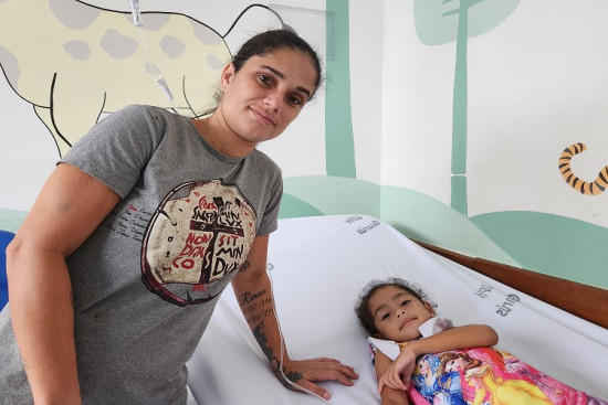 ATENDIMENTO – Com a filha Ana Clara, de 4 anos, com suspeita de dengue, a cuidadora Ellen Alves, 30, esteve na Clínica da Criança nesta quinta-feira (11) em busca de atendimento. “Ela começou com febre, vômito e muita dor nas pernas. Cheguei aqui e logo fui atendida. A médica passou a medicação e ela veio para o soro. Agora, estou aguardando o resultado do exame”, disse a mãe que é moradora do Parque Boa Vista.