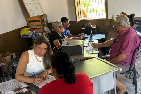 Equipe esteve novamente no distrito nesta quarta-feira para coleta de documentos dos comerciantes que tiveram prejuízos com a enchente que atingiu o distrito no final de março e que têm interesse na linha de crédito especial